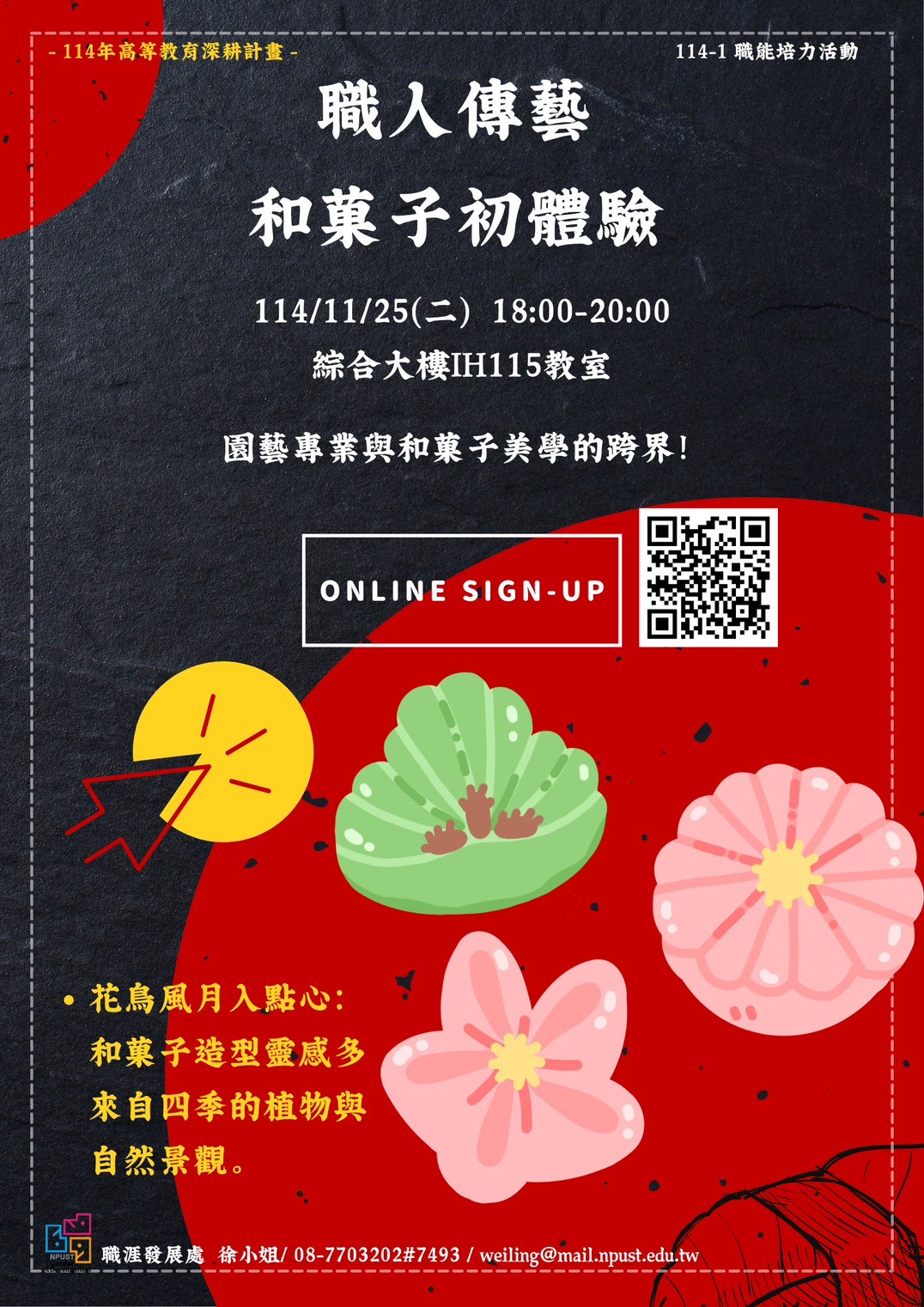 114-1職能培力活動-職人傳藝【和菓子初體驗】Masterful Craftsmanship –  Japanese sweets