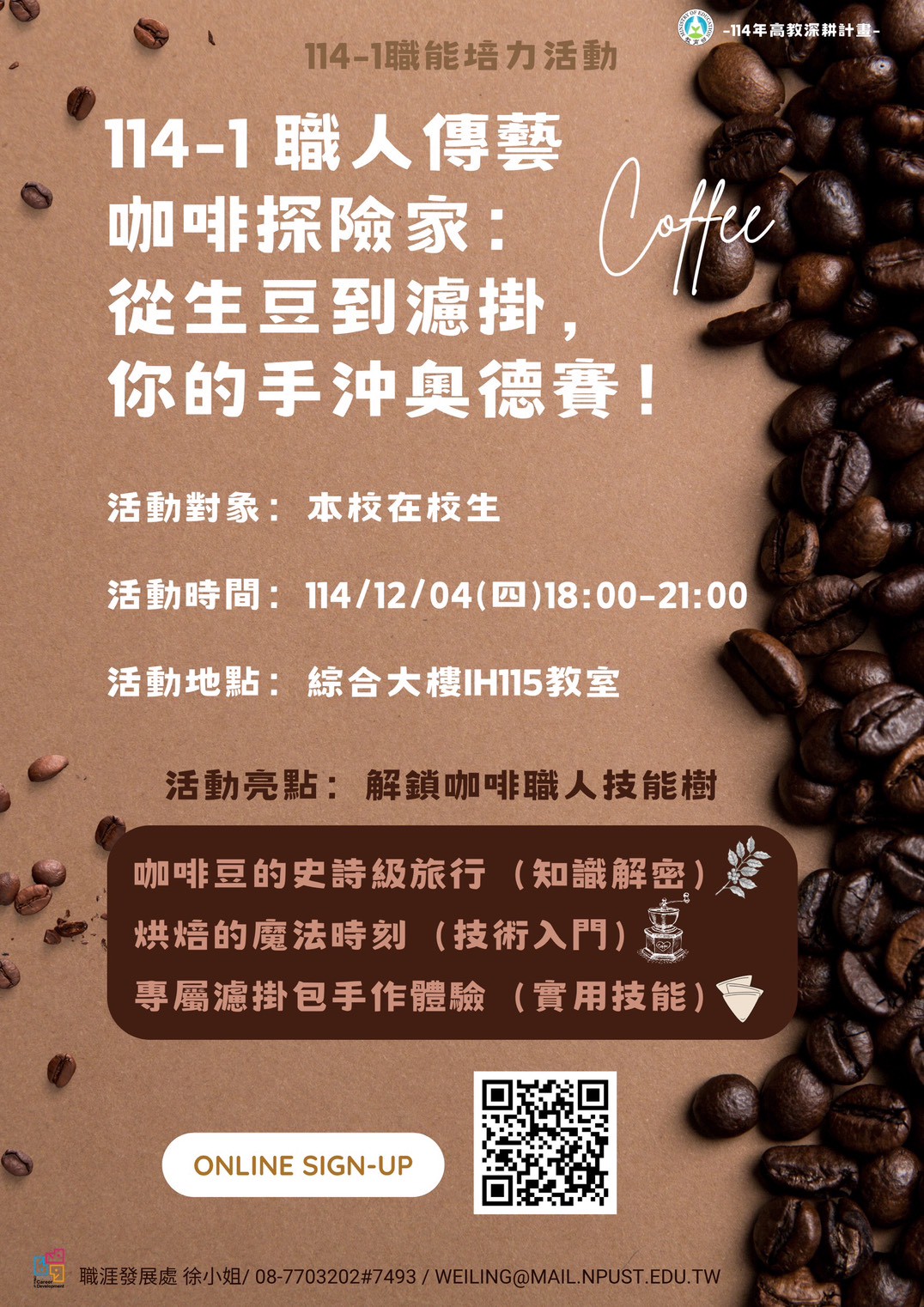 114-1職能培力活動-職人傳藝【咖啡探險家:從生豆到濾掛,你的手沖奧德賽!】