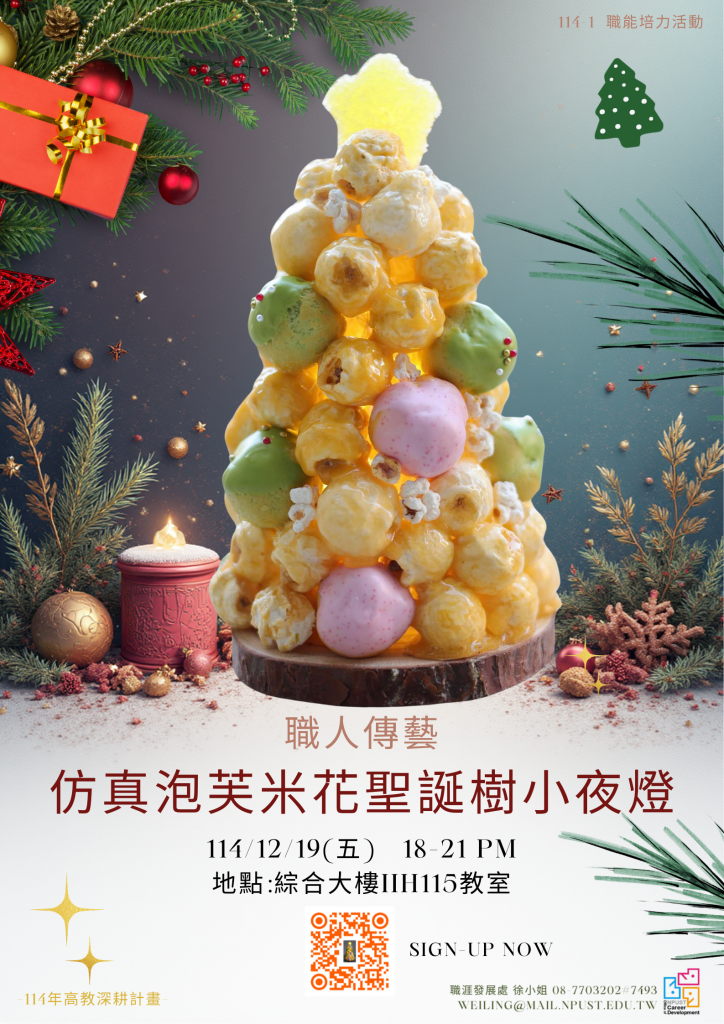 114-1職能培力活動-職人傳藝【 仿真泡芙米花聖誕樹小夜燈 】