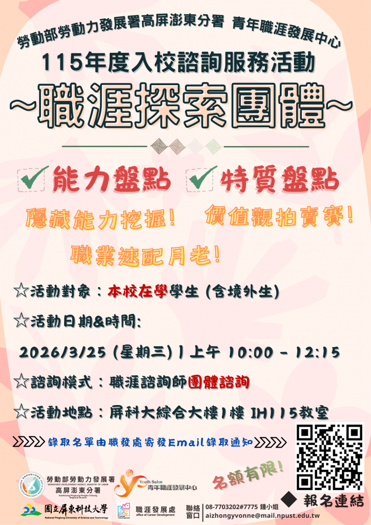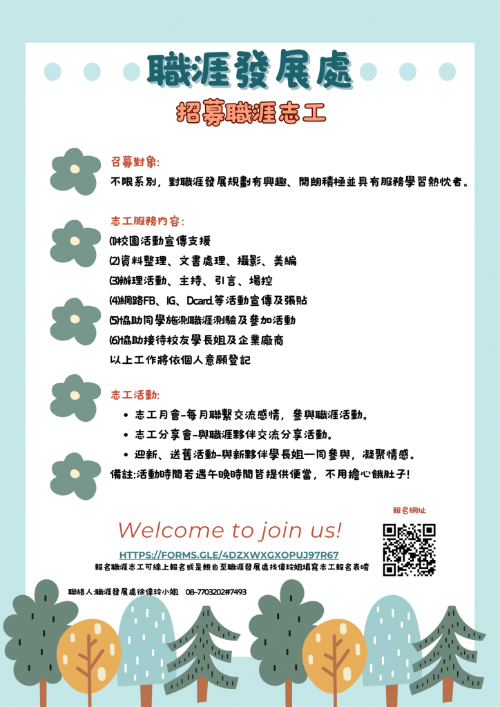 114-2職涯志工招募中 Join the NPUST OCD Career Volunteer Team